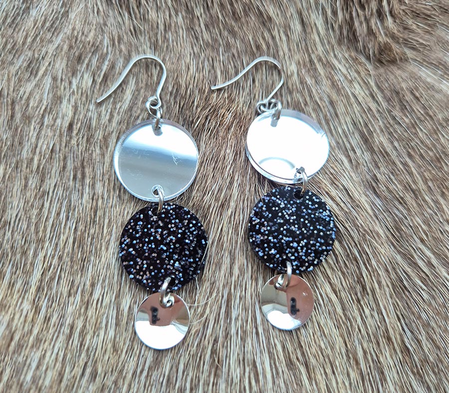 Lett akryl med glitter og speilglans Sølv eller forgylte løv Kroker i rustfritt allergivennlige stål