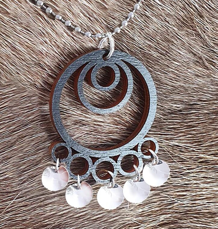 Halssmykke laget av bjørktre