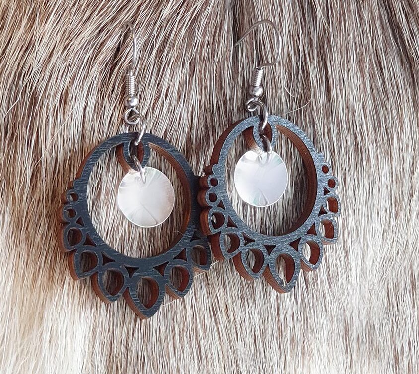 Øredobber laget av bjørktre, veldig lette på ørene
