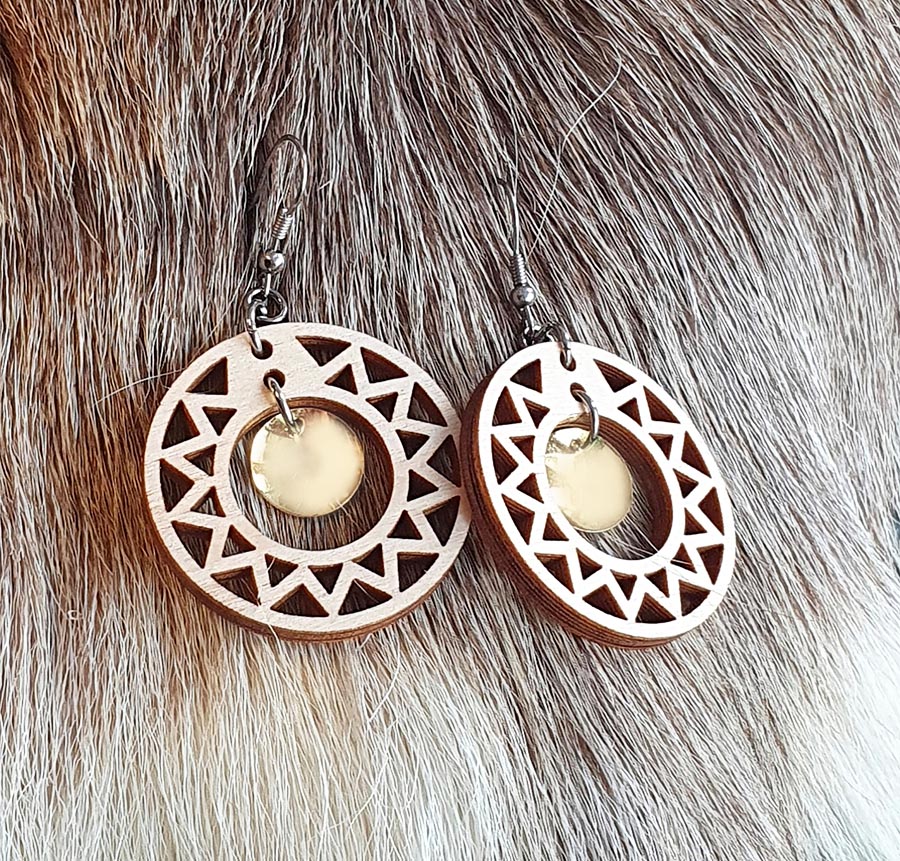 Øredobber laget av bjørktre, veldig lette på ørene